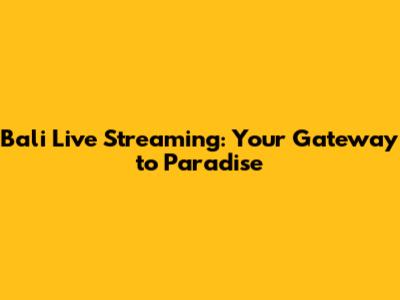 Bali Live Streaming: Your Gateway To Paradise