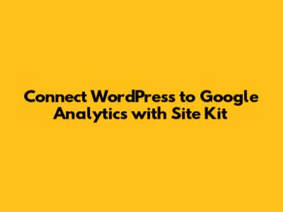 Connect WordPress To Google Analytics With Site Kit