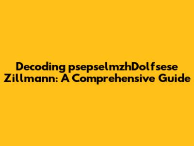 Decoding PsepselmzhDolfsese Zillmann: A Comprehensive Guide