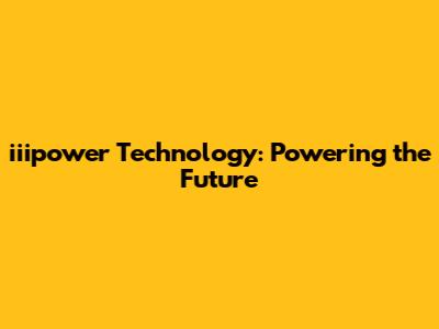 Why iiipower Technology Inc. Matters: The Impact and Benefits