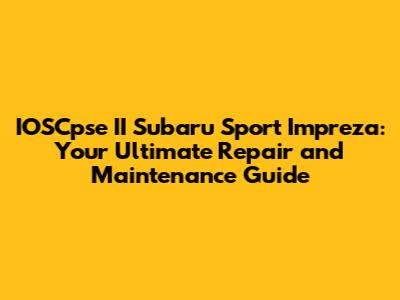 IOSCpse II Subaru Sport Impreza: Repair & Maintenance Guide