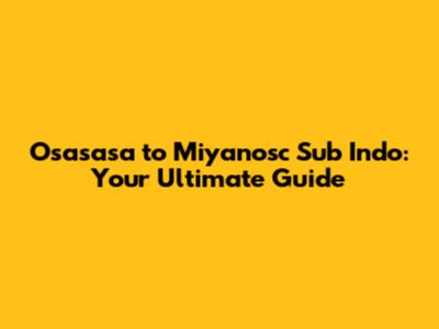 Osasasa To Miyanosc Sub Indo: Your Ultimate Guide