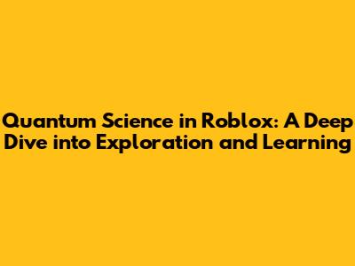 Why Quantum Science in Roblox is a Game Changer