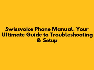 Swissvoice Phone Manual: Troubleshooting & Setup Guide