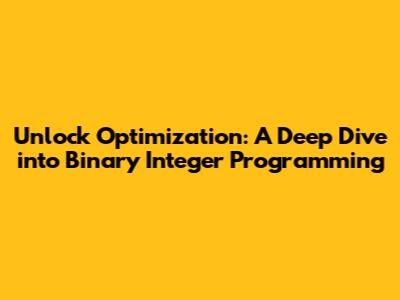 Hey guys, let's talk about something super cool in the world of optimization: the binary integer programming model! If you've ever found yourself trying to make the absolute best decision out of a bunch of options, where each option is either a 'yes' or a 'no', then you've already bumped into the core idea behind this powerful technique. We're talking about situations where you can't have half a solution; it's all or nothing. Think about it – should you build a factory in location A or B? Should you invest in project X or Y? Should you send a truck down route 1 or route 2? These aren't decisions you can partially commit to. You either do it or you don't. That's where binary integer programming shines, providing a structured mathematical way to tackle these kinds of discrete decision-making problems. It’s not just for theoretical stuff, either. Businesses use it all the time to optimize everything from resource allocation and scheduling to logistics and financial portfolio selection. So, buckle up, because we're about to break down what makes this model tick, why it's so darn useful, and how it can help you make smarter, more effective choices in a world full of yes-or-no scenarios. We'll explore the fundamental components, look at some real-world examples, and get a feel for the kind of challenges it can solve. Get ready to level up your problem-solving game!