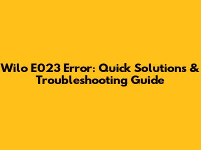 Wilo E023 Error: Quick Solutions & Troubleshooting